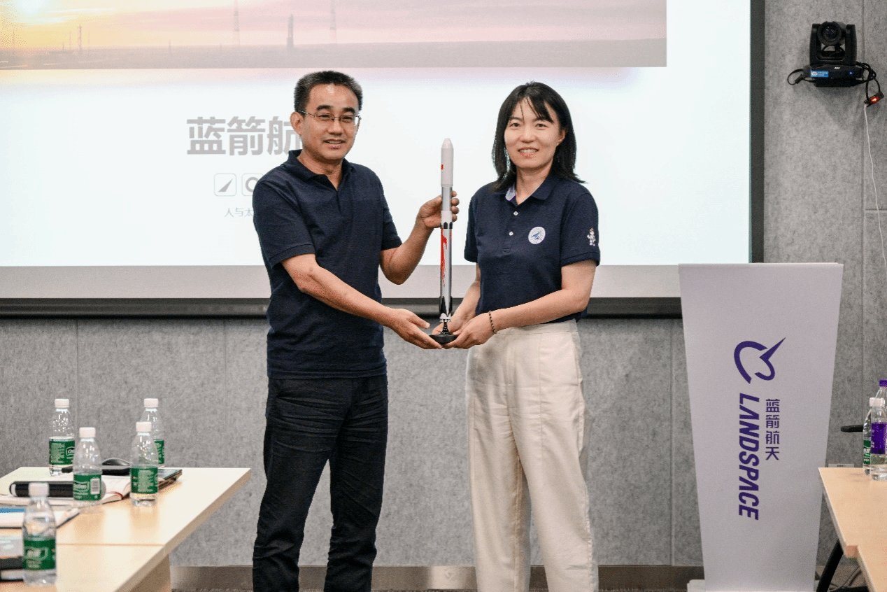 最后,蓝箭航天向TapTap赠送了“朱雀3号”火箭模型,双方单位进行了老员工社会实践基地挂牌仪式。