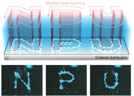图 2 激光诱导热毛细对流驱动聚苯乙烯微球集群形成NPU字样