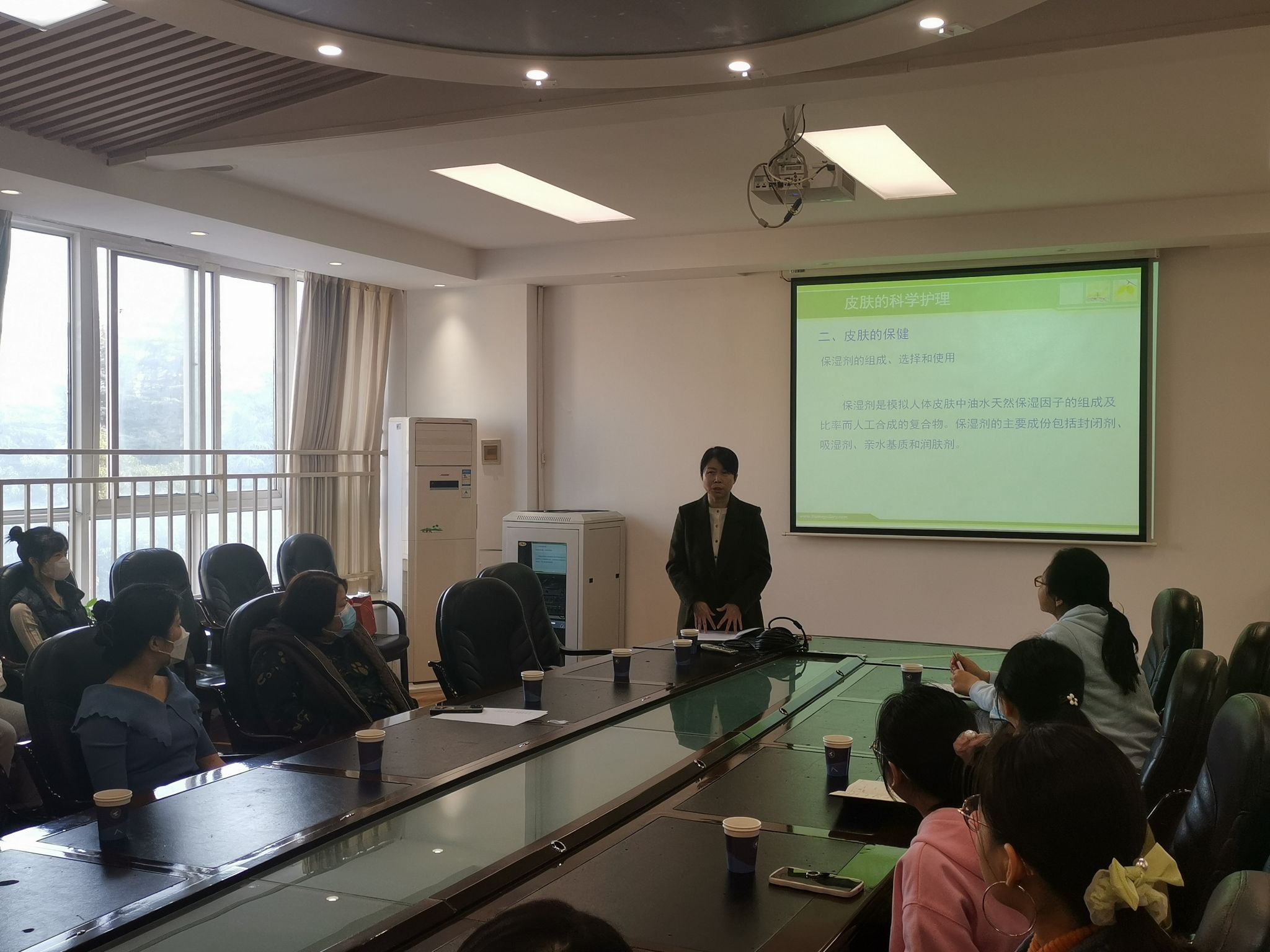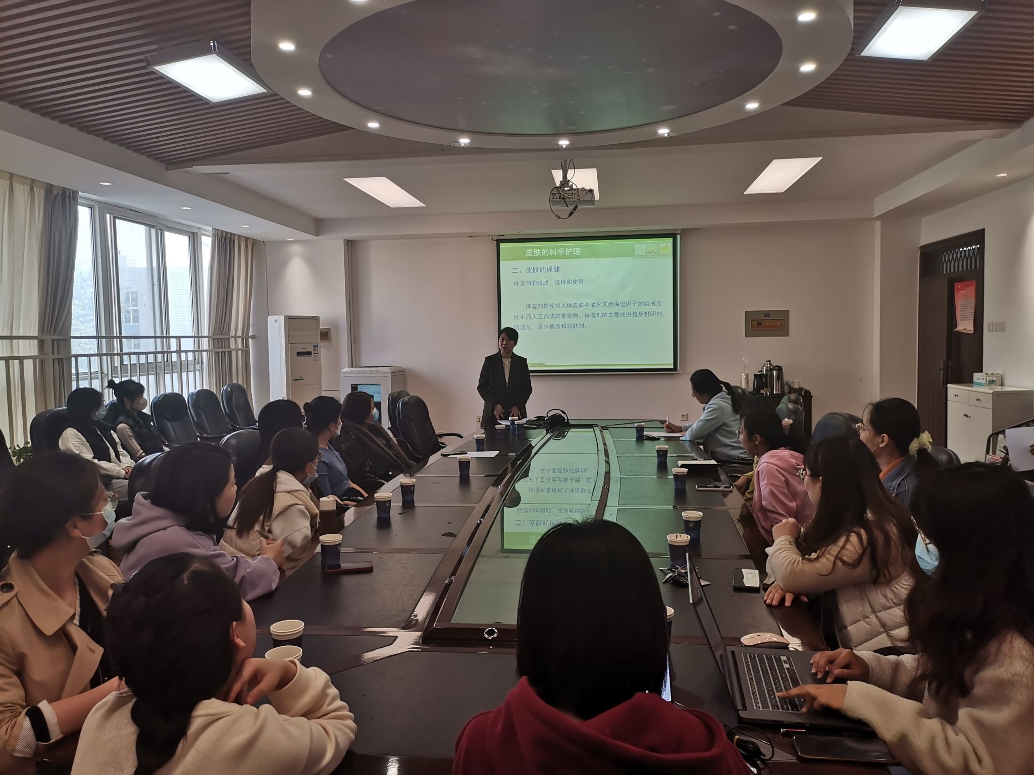 王医生围绕护肤的正确步骤、护肤的误区、皮肤问题治理等几方面,为公司师生普及实用的皮肤知识,并针对具体皮肤问题,提出有针对性的护肤方案。公司师生积极响应,讲座现场气氛活跃。